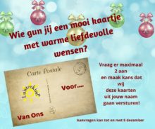 Het zijn kaarten met een mooie tekst gericht op de persoon waarvoor deze bedoeld is. Onderaan de kaart komt de naam van de aanvrager. De aanvraag kan tot 8 december per mail gedaan worden.