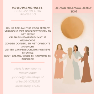 Vrijdagavond 10 oktober is er een vrouwencirkel waar jij je voor kunt opgeven.
